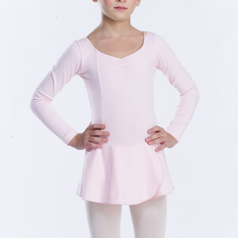 Body manica lunga con fianchetti e arricciatura davanti, con gonnellino a portafoglio inserito, disponibile in diversi colori.