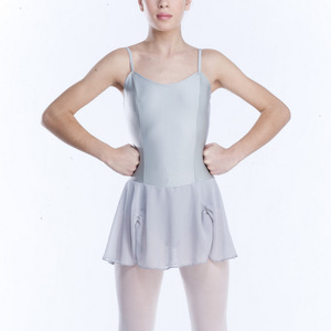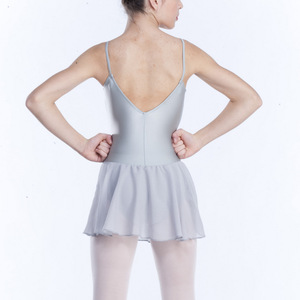Body bretellina con fianchetti e gonnellino a ruota in georgette inserito e arricciato sul davanti, per danza classica e moderna, disponibile in diversi colori, fodera a richiesta.