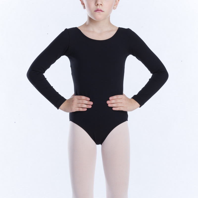 Body-studio con manica lunga, scollo tondo, per danza e ginnastica, disponibile in diversi colori.