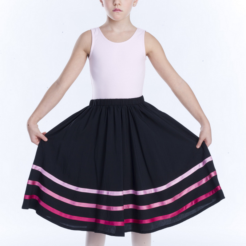 Gonna carattere modello Rad in tessuto pol. con nastri colorati nella tonalita' del rosa e dell'azzurro, per danza classica.