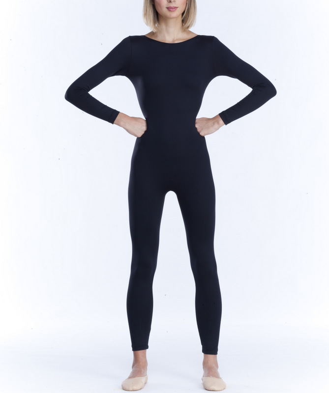Tuta accademica sana davanti, maniche lunghe e profondo scollo dietro,per danza classica e moderna, disponibile in diversi colori.